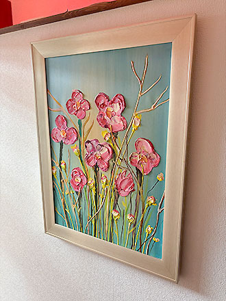 続いては店内のアイテムたちをじっくりご紹介!まず1枚目はピカピカのシャワー室。きれいな白が保たれていて清潔感バツグン♪ 2枚目は受付カウンターに並ぶカラフルなキャンディーと金の招き猫。幸運を呼び込みそう! 3枚目は廊下に飾られたレリーフの花の絵画。店全体の雰囲気をグッと格上げしています。ラスト4枚目は施術で使うオイルやパウダー類。こだわりの品揃えで、プロの仕事を感じますぞ!