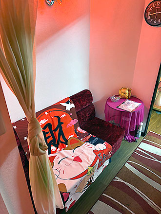 早速ドアを開けると「いらっしゃいませ!」と元気な挨拶でお出迎え。やはり長く営業されている老舗店、落ち着きと安定感がハンパないですな!店内の縁起物の装飾が目立つ気さくな雰囲気は、かつてのアジアンエステのイメージそのもの。長年通うファンなら「こういうのでいいんだよ~!」と感涙するやもしれませんな。施術室は全部で3部屋、シャワー室とトイレはしっかり綺麗にされていて安心ですぞい!